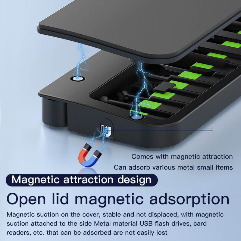 Smart Magnetic Structure: The magnetic cover ensures safe storage of tools, while the magnetic area on the side securely holds small metal items such as SIM card ejector tool and USB flash drives. Even during intense use or movement, everything stays stable and is not easily lost.